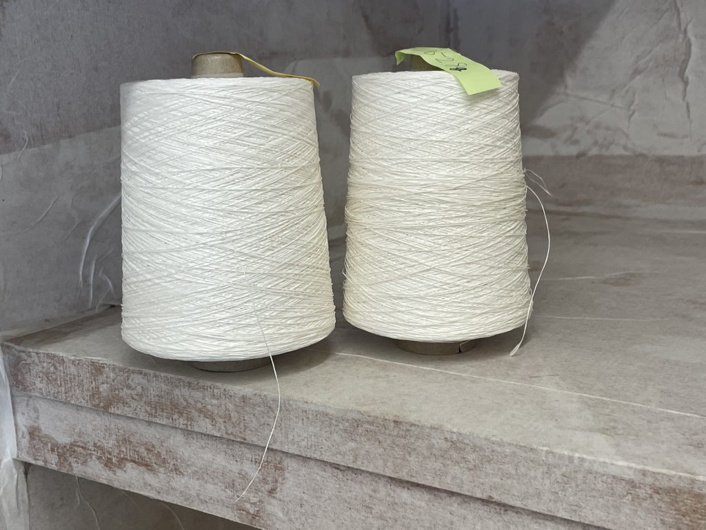 再生紙から作られる「紙糸(かみいと)」です。